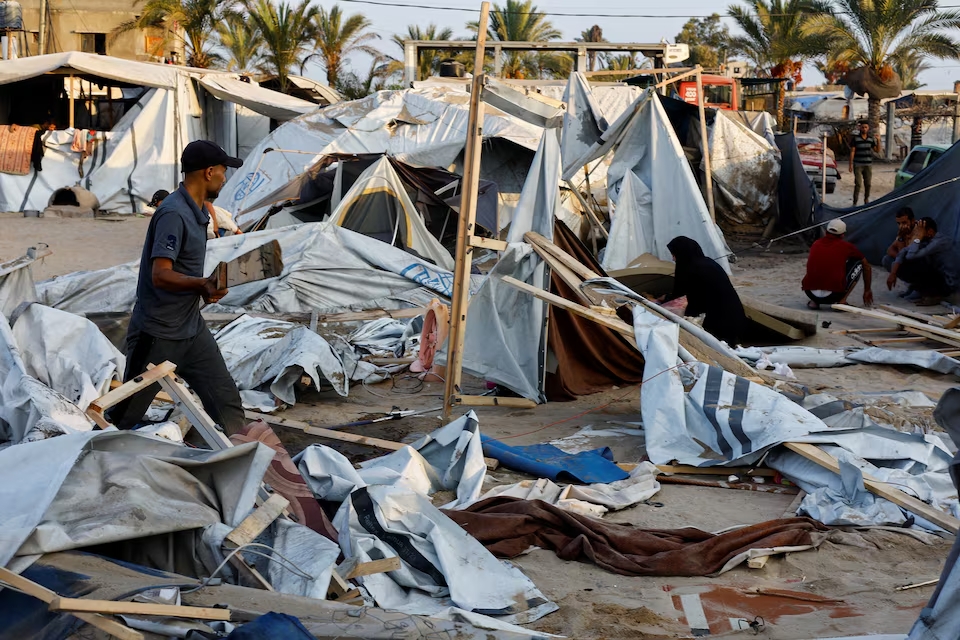 Warga dan petugas medis mengatakan bahwa sebuah perkemahan tenda dekat Khan Younis di daerah Al-Mawasi, yang ditetapkan sebagai zona kemanusiaan, diserang oleh sedikitnya empat rudal. Perkemahan itu dipenuhi warga Palestina yang mengungsi dari wilayah lainnya di Gaza.