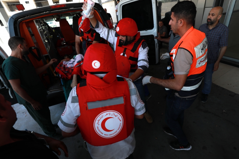 Masyarakat Bulan Sabit Merah Palestina melaporkan bahwa empat personel ambulansnya turut menjadi korban, karena pasukan penjajah Israel menyerang sebuah ambulans di Jalan Salah al-Din di pintu masuk Deir al-Balah.