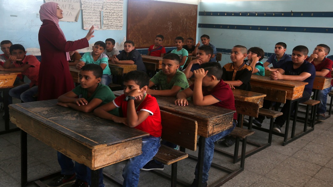 Terbatasnya gedung sekolah di Gaza membuat jam masuk sekolah anak dibagi 2 waktu, siang dan malam.