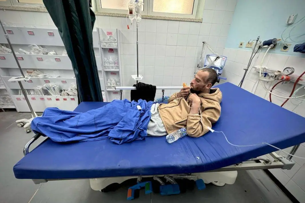 Tahanan Gaza Nadir Jamal Hussein, yang dibebaskan pada putaran ke-6 gencatan senjata dan perjanjian pertukaran tahanan-sandera antara Hamas dan Israel, tiba di Rumah Sakit Eropa di Khan Yunis, Gaza, pada tanggal 15 Februari 2025. [Abdallah Fs Alattar – Anadolu Agency]
