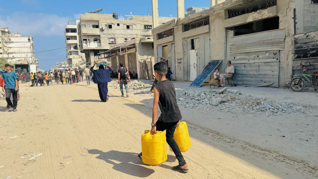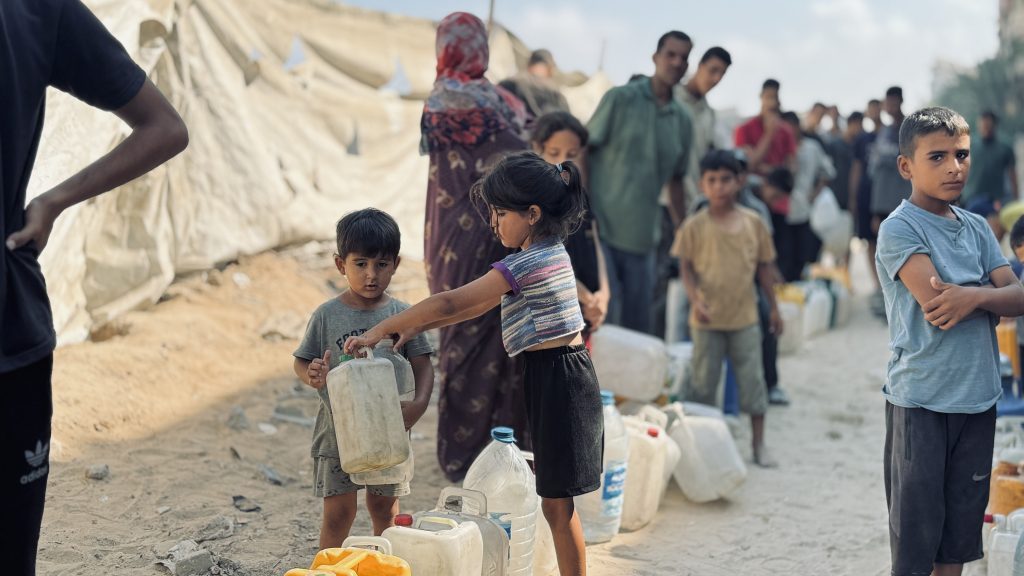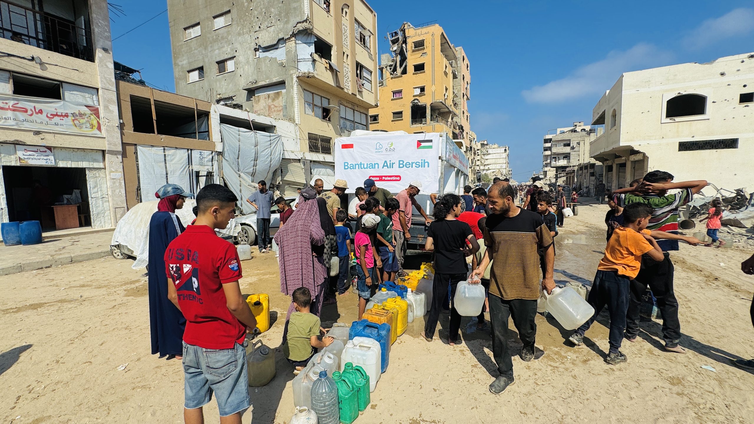 Perjalanan untuk mendapatkan air bersih telah menjadi perjalanan yang berbahaya di Gaza. Baru-baru ini, tujuh anak Palestina menjadi sasaran serangan Israel saat mengantre untuk mendapatkan air bersih di Al Mawashi. Jerigen yang mereka bawa telah terisi dengan air bersih, namun bercampur dengan genangan darah dari anak-anak tak berdosa tersebut.