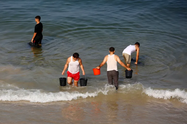 “Kami tidak punya air, tidak ada sanitasi, tidak ada sistem pembuangan limbah,” kata Imm Mahmoud, yang tinggal di sekolah yang sama. “Dengan kurangnya kebersihan dasar, tidak ada di antara kami yang merasa nyaman.” Ibu berusia 52 tahun yang telah mengungsi selama sebulan itu mengatakan bahwa dia tidak punya pilihan selain mencuci pakaian keluarganya di laut. Tapi dia tahu bahwa air laut pun tercemar.