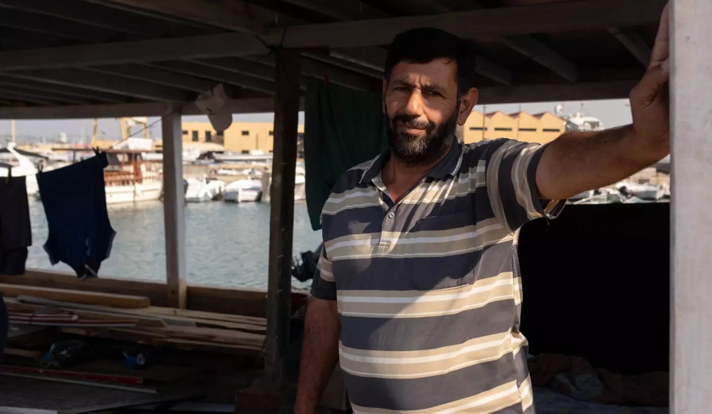 Di pelabuhan, Adel el-Abedi, seorang nelayan asal Palestina, menata ulang kapalnya sehingga ia dapat tinggal di dalamnya selama perang, dengan harapan kapal itu akan melindunginya dari serangan.