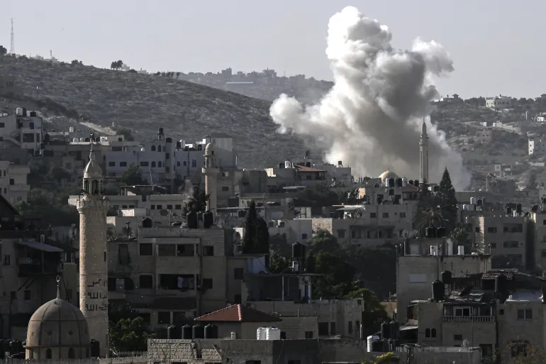 Asap mengepul selama bentrokan antara pasukan Israel dan pejuang perlawanan Palestina di kamp pengungsi Jenin, di kota Jenin, Tepi Barat yang diduduki, pada 9 November 2023 [Aris Messinis/AFP]
