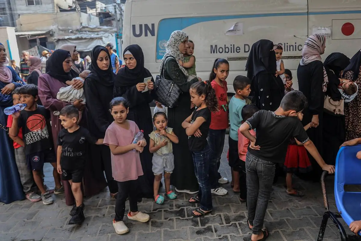 Para orang tua dengan cemas mengantre bersama anak-anak mereka untuk mendapatkan vaksin polio di Gaza. Mereka menghitung mundur jam hingga jeda agresi berakhir di daerah tersebut pada Rabu (4/9). Agresi Israel telah mengancam lebih banyak kematian dan kehancuran dalam perang yang telah berlangsung selama 11 bulan.